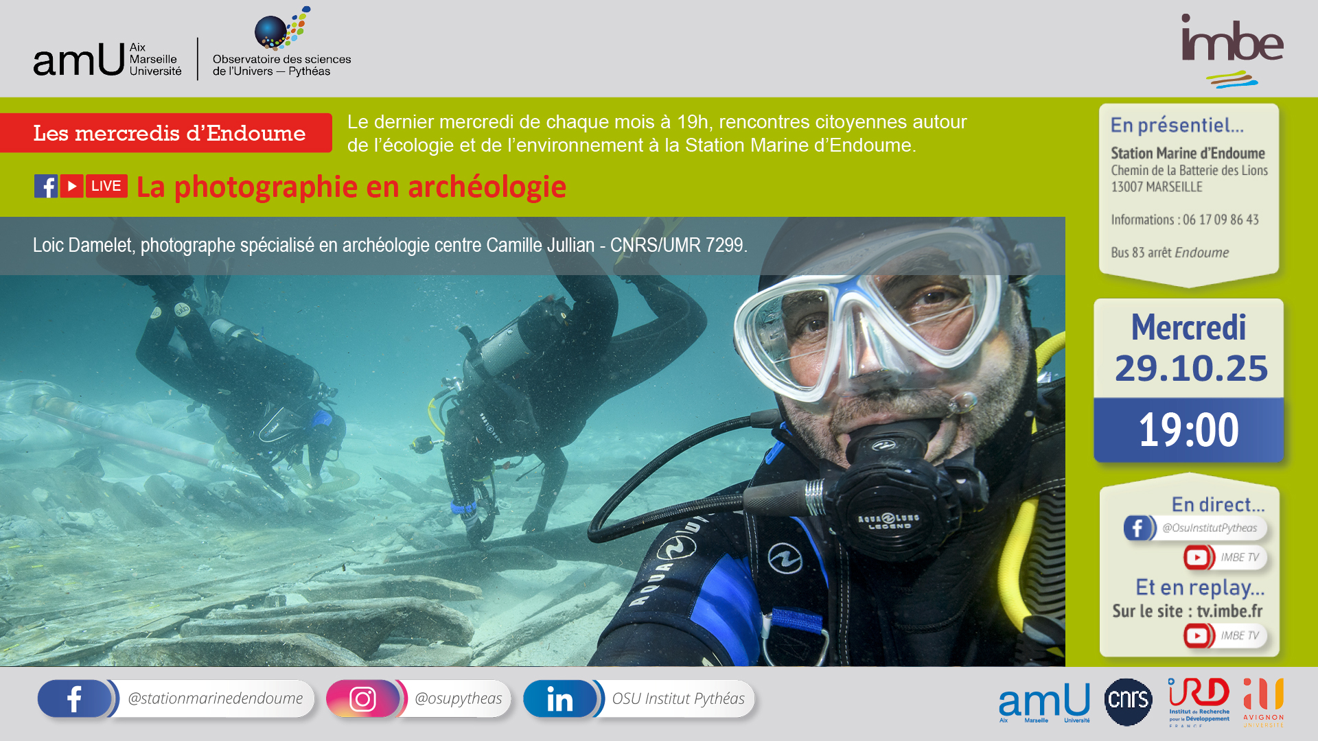 Les mercredis d’Endoume sont organisés par l’IMBE, en partenariat avec l’OSU Pythéas et Aix Marseille Université. vous souhaitez nous rejoindre en présentiel? Cliquez ici